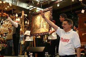 Auctioneers guide the sale of one of the pieces of art auctioned at Red Baron's Antiques.